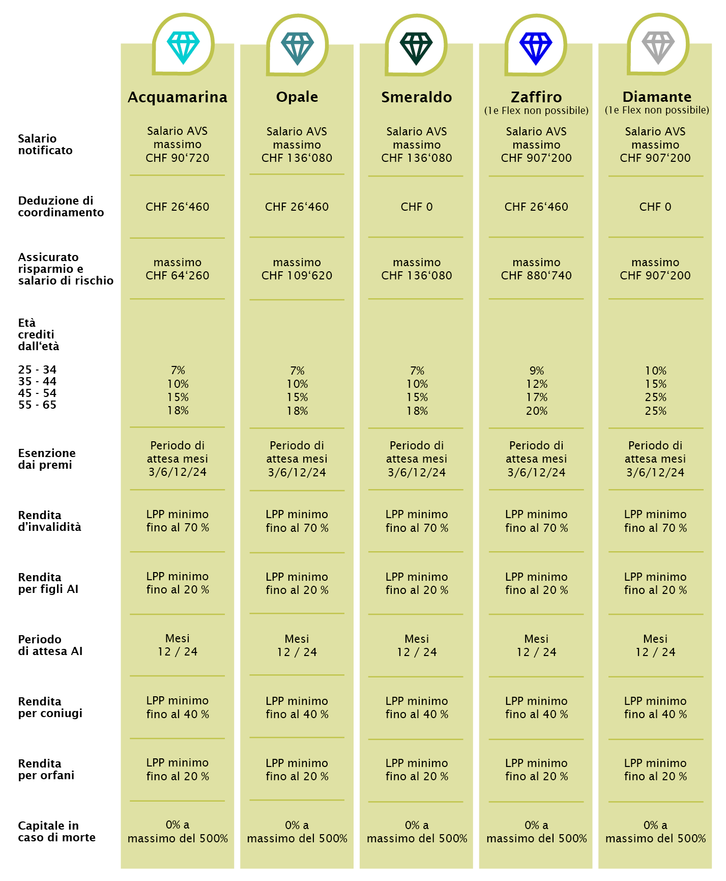 Gli sportivi indipendenti, i consulenti sportivi, i pianificatori sportivi, i manager sportivi, gli allenatori, i fisioterapisti e le professioni affini nel settore sportivo possono scegliere la loro soluzione previdenziale LPP tra uno dei quattro piani predefiniti.