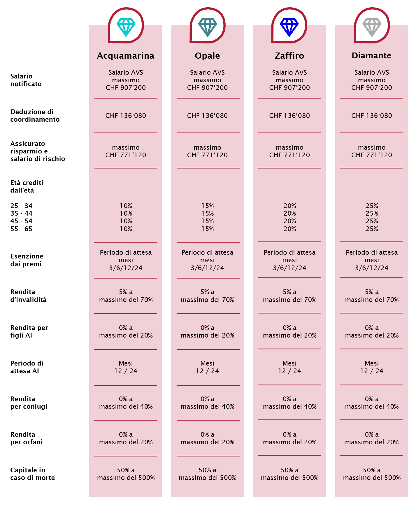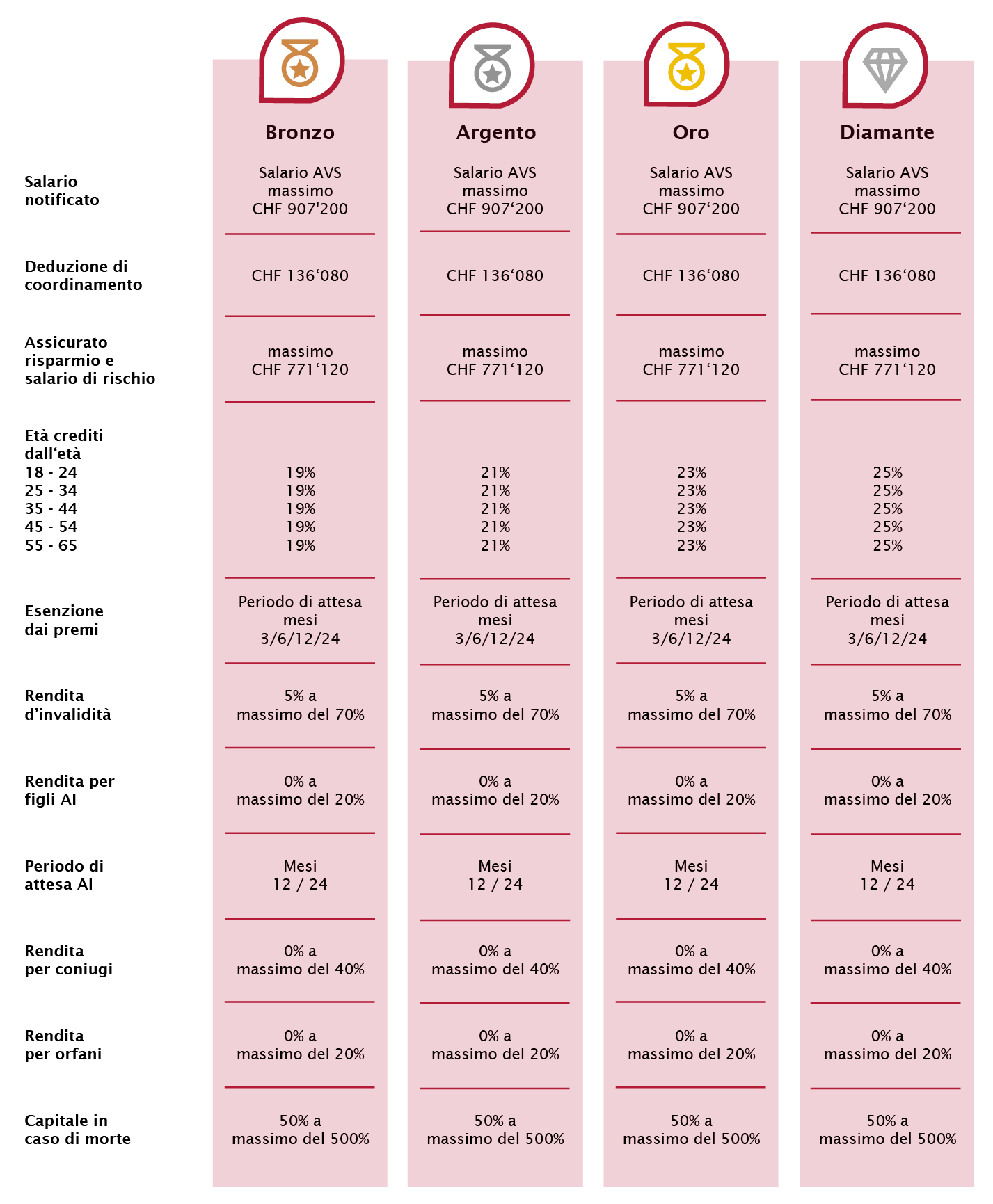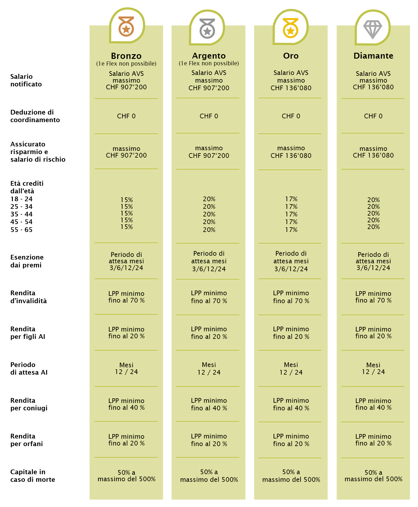 Gli sportivi indipendenti, i consulenti sportivi, i pianificatori sportivi, i manager sportivi, gli allenatori, i fisioterapisti e le professioni affini nel settore sportivo possono scegliere la loro soluzione previdenziale LPP tra uno dei quattro piani predefiniti.
